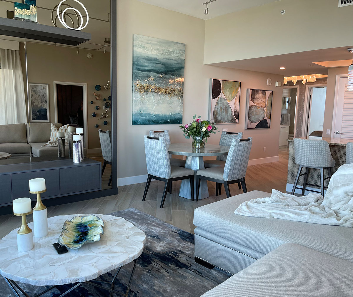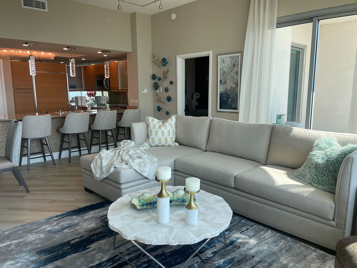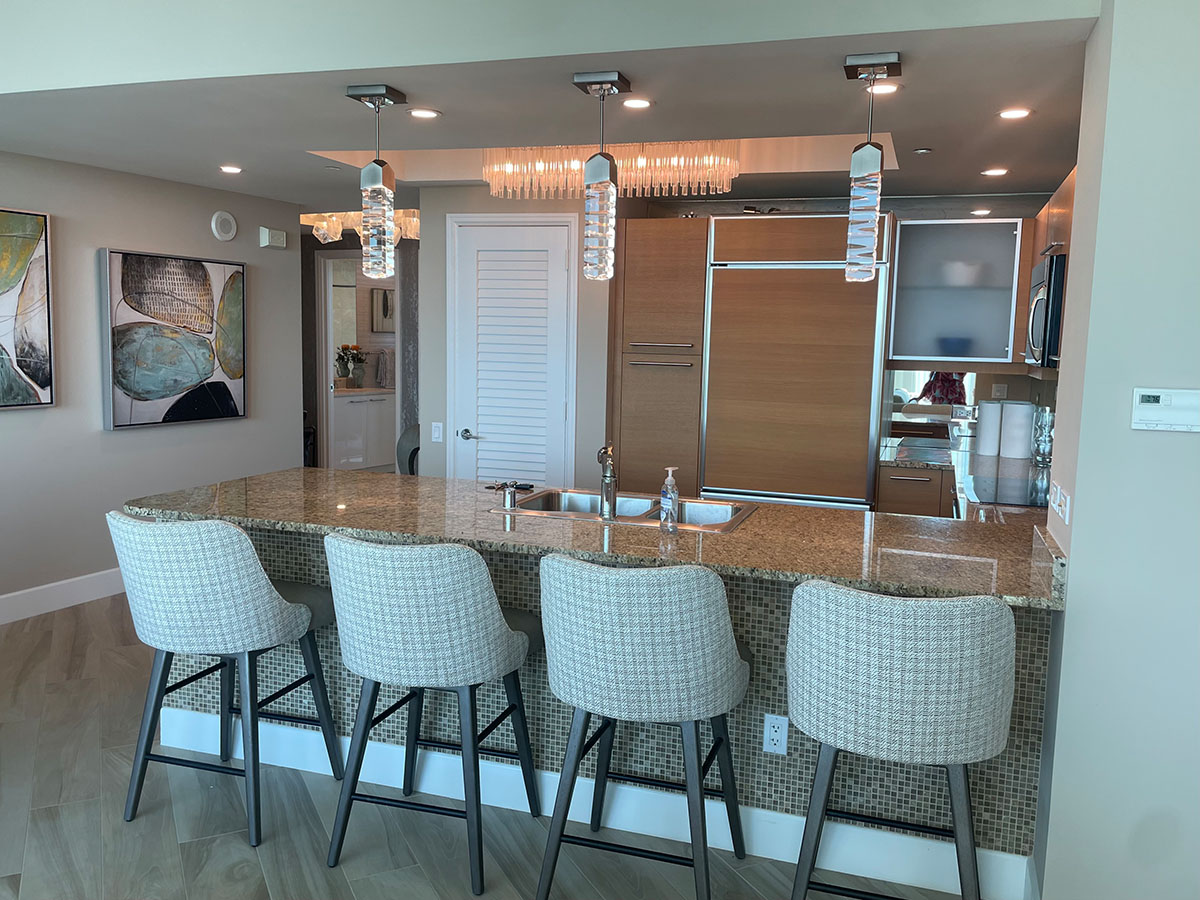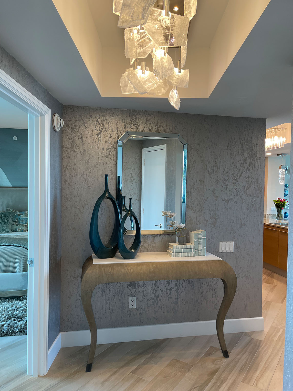 We first designed for this couple 10 years back and so we were delighted to have another opportunity to work together! This was a total turnkey project – We did a surface update with new floors, paint, and some beautiful wallpapers as well as all new furnishings. Our clients moved in with just their clothes!
